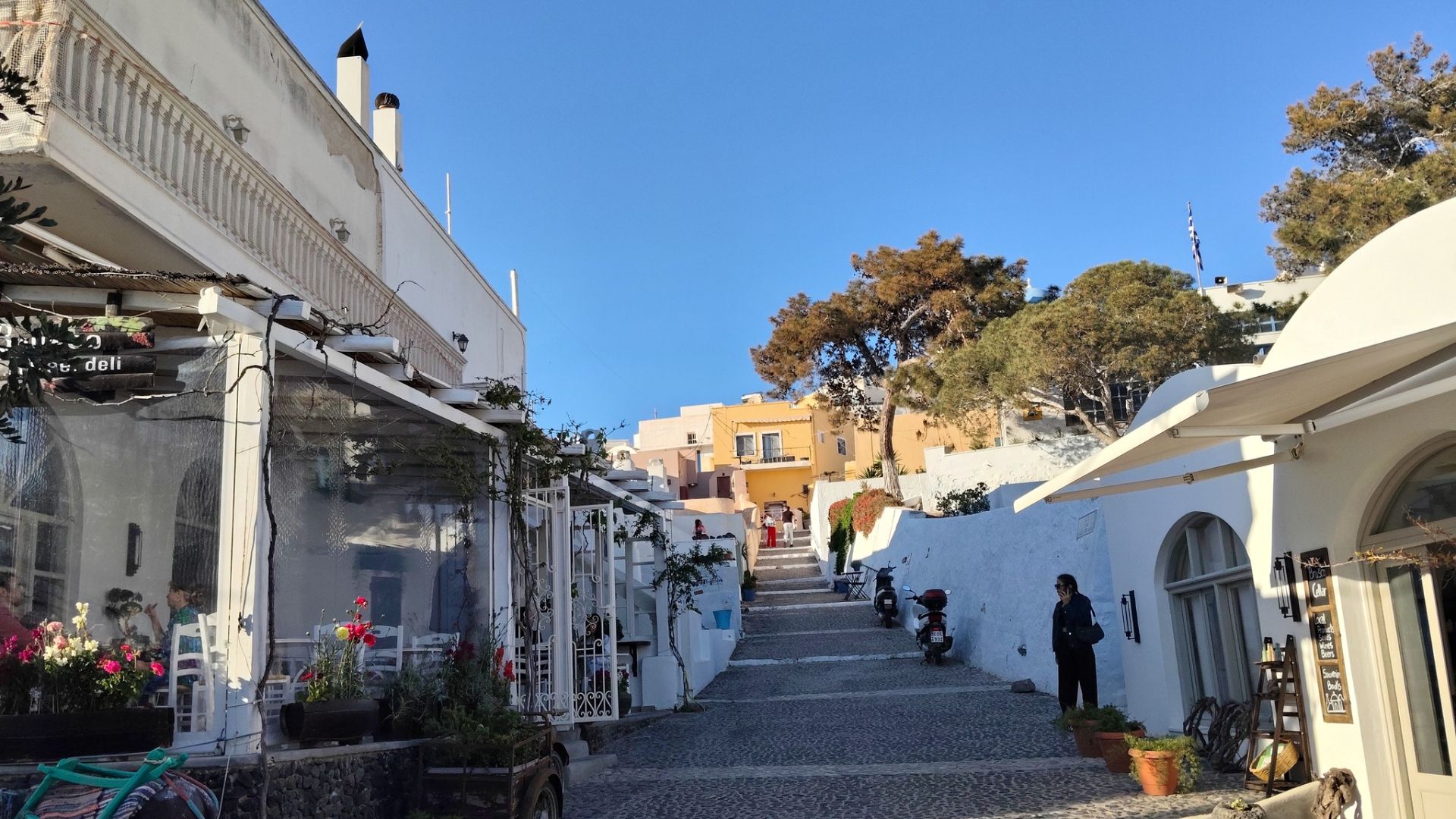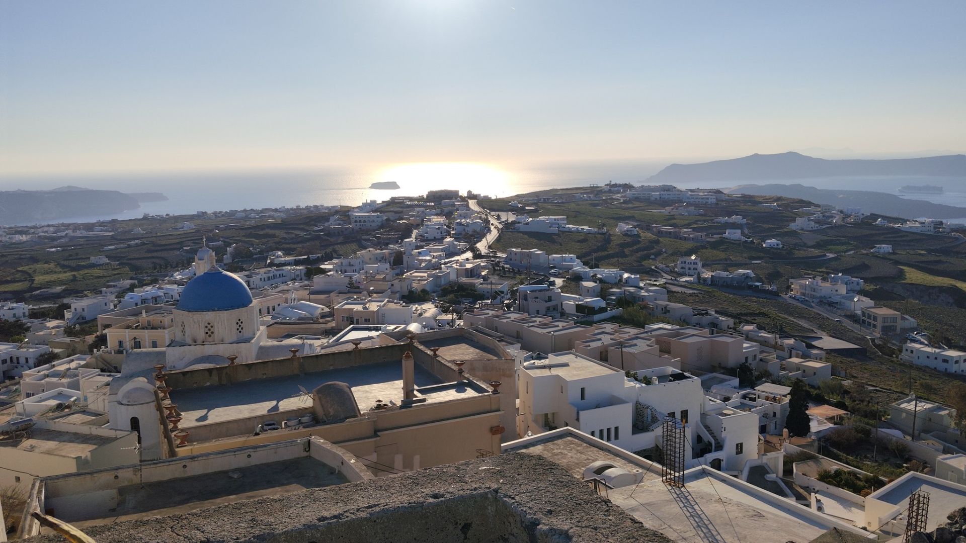 Την πρώτη ημέρα, ταξιδέψαμε αεροπορικώς στη Σαντορίνη και είχαμε την πρώτη μας γνωριμία με το νησί μέσα από περιήγηση στα Φηρά, την πρωτεύουσα της Σαντορίνης, καθώς και στο παραδοσιακό χωριό Πύργος, έναν από τους πιο χαρακτηριστικούς οικισμούς του νησιού, με ιδιαίτερη αρχιτεκτονική και πανοραμική θέα.