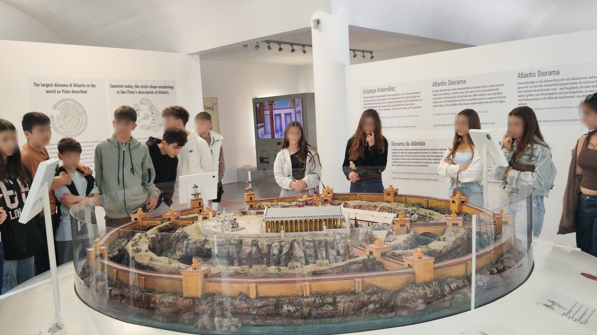 Τη δεύτερη ημέρα, επισκεφθήκαμε το ΕΠΑ.Λ. Θήρας, όπου ξεναγηθήκαμε στα εργαστήρια των ειδικοτήτων και γνωρίσαμε από κοντά τον τρόπο λειτουργίας μιας σχολικής μονάδας επαγγελματικής εκπαίδευσης, καθώς και τις δυνατότητες που προσφέρει στους μαθητές/τριές της. Στη συνέχεια, ακολούθησε επίσκεψη στο οινοποιείο Santo Wines, όπου ενημερωθήκαμε για τη διαδικασία παραγωγής του κρασιού, τη σημασία της αμπελουργίας στη Σαντορίνη και τη σχέση της με το ιδιαίτερο ηφαιστειακό έδαφος του νησιού. Η ημέρα συνεχίστηκε με επίσκεψη στο διαδραστικό μουσείο «Χαμένη Ατλαντίς», όπου προσεγγίσαμε με σύγχρονο και βιωματικό τρόπο τον μύθο της Ατλαντίδας, την ηφαιστειακή έκρηξη και τη σύνδεσή τους με την ιστορία και τη γεωμορφολογία της Σαντορίνης. Το βράδυ, απολαύσαμε το μοναδικό ηλιοβασίλεμα στα Φηρά.