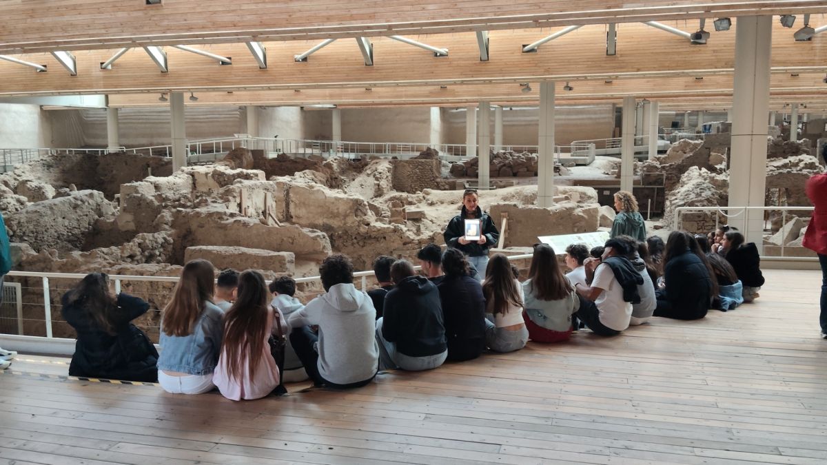 Την τέταρτη ημέρα, επισκεφθήκαμε τον Αρχαιολογικό Χώρο του Ακρωτηρίου, έναν από τους σημαντικότερους προϊστορικούς οικισμούς του Αιγαίου. Ο οικισμός, που διατηρήθηκε σε εξαιρετική κατάσταση κάτω από τα ηφαιστειακά υλικά της μεγάλης έκρηξης, προσφέρει πολύτιμες πληροφορίες για την καθημερινή ζωή, την οργάνωση, την τέχνη και τον πολιτισμό της προϊστορικής Θήρας. Η επίσκεψη μάς έδωσε τη δυνατότητα να συνδέσουμε την περιβαλλοντική διάσταση του προγράμματος με την ιστορία και τον πολιτισμό του νησιού. Ακολούθησε επίσκεψη στην εντυπωσιακή Κόκκινη Παραλία, όπου παρατηρήσαμε το ιδιαίτερο ηφαιστειακό τοπίο και τους χαρακτηριστικούς κόκκινους βράχους, ενώ στη συνέχεια πραγματοποιήθηκε βόλτα στο Καμάρι. Η εκπαιδευτική εκδρομή ολοκληρώθηκε με την αεροπορική επιστροφή μας στην Αθήνα και κατόπιν στην Ύδρα.