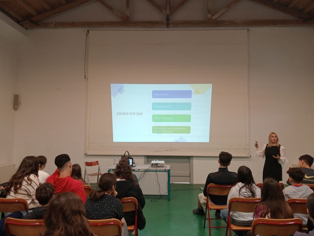Παρουσιάστηκαν βασικές αρχές του σχολικού επαγγελματικού προσανατολισμού, οι δυνατότητες εκπαιδευτικών και επαγγελματικών διαδρομών και η σημασία της αυτογνωσίας στις επιλογές τους.