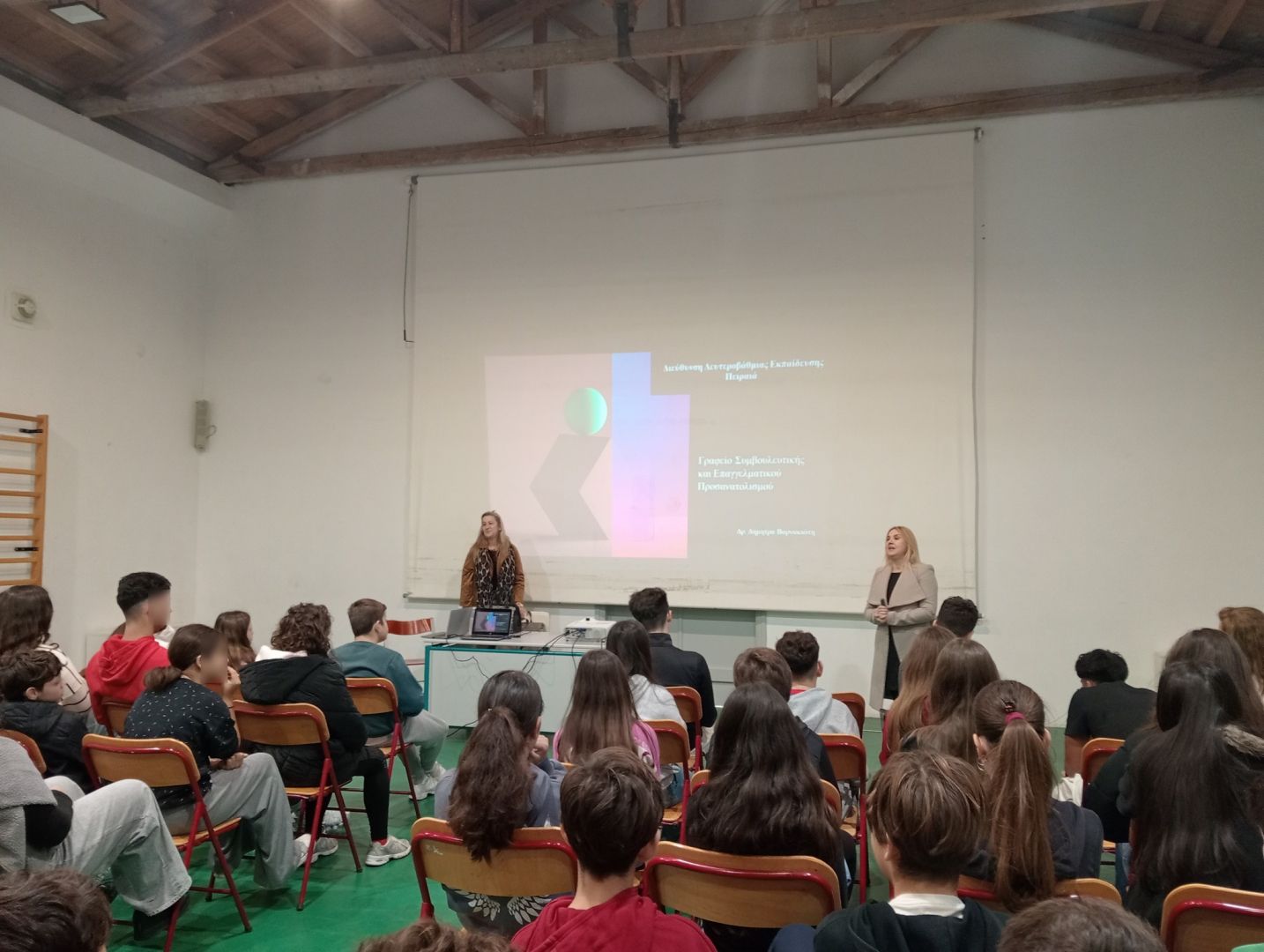 Θα θέλαμε να ευχαριστήσουμε από καρδιάς τις δύο εισηγήτριες, κα Δήμητρα Βαρνακιώτη (Υπεύθυνη Τομέα Σχολικού Επαγγελματικού Προσανατολισμού της Δ.Δ.Ε Πειραιά) και κα Αλεξάνδρα Χαρώνη (Υπεύθυνη Τομέα Περιβαλλοντικής Εκπαίδευσης της Δ.Δ.Ε Πειραιά) για την ουσιαστική και κατανοητή παρουσίαση των θεμάτων, καθώς και τη διάθεσή τους για γόνιμο διάλογο και γνήσια συνεργασία με τη σχολική μας κοινότητα.