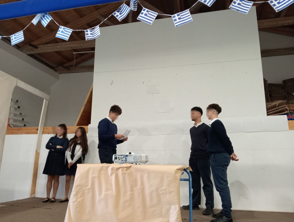 Ακολούθησε αφιέρωμα στο μεγάλο Έπος του ΄40 με τους μαθητές και τις μαθήτριες να απαγγέλουν ποιήματα, να συμμετέχουν σε θεατρικά δρώμενα και να τραγουδούν επετειακά τραγούδια. Με τον τρόπο αυτό τίμησαν τους ήρωες και τις ηρωίδες του ’40, όλους και όλες που στάθηκαν όρθιοι απέναντι στον φασισμό και τον ναζισμό, προσφέροντας ακόμη και τη ζωή τους για την ελευθερία, την αξιοπρέπεια και την ανεξαρτησία της πατρίδας. Την πολύ όμορφη σχολική μας γιορτή οργάνωσε και συντόνισε η εκπαιδευτικός του σχολείου μας κα Ευαγγελία Στρουμπούλη.